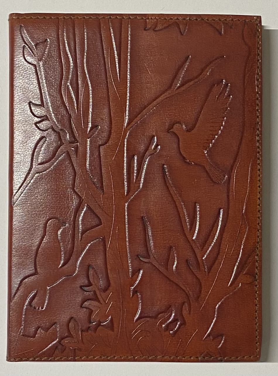Notizbuch 12,5*17,5cm aus Rindsleder, “Vögel” braun, Prägung blind