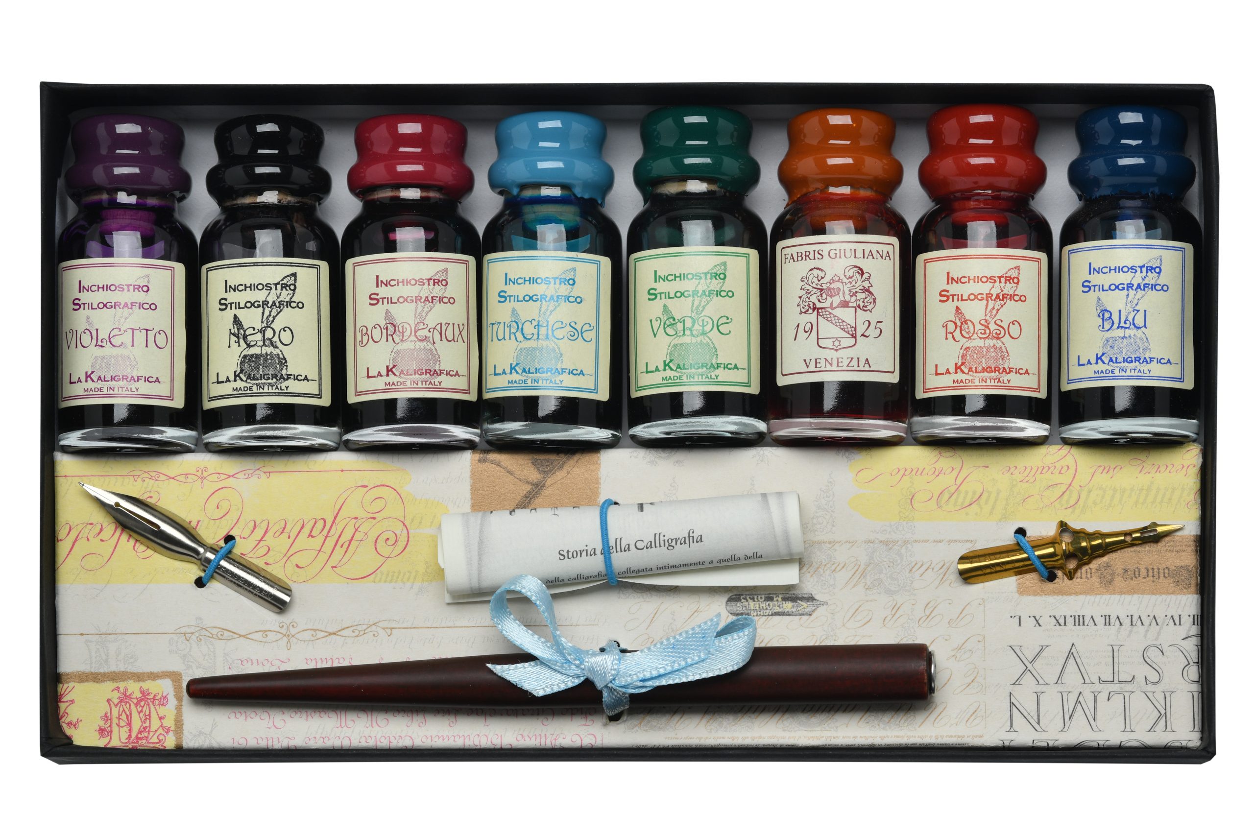 Geschenkset mit 8 Tuschen, Holzfederhalter und 2 Federspitzen